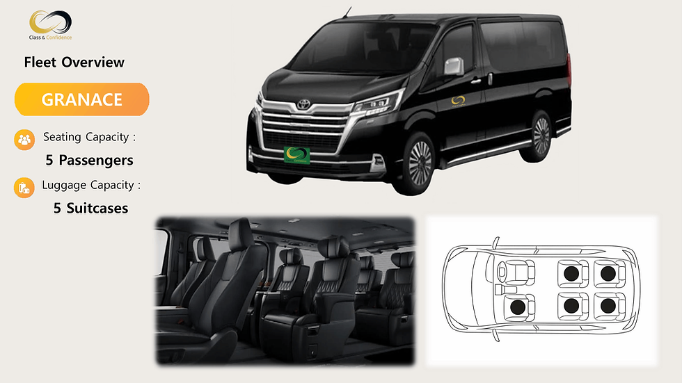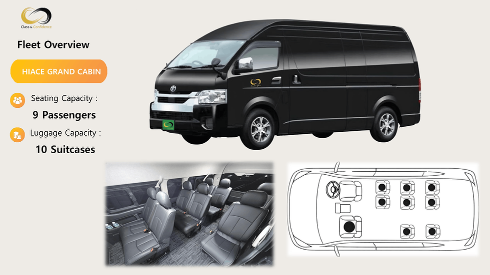 Choose the right vehicle for your airport transfer, business trip, family travel, or day charter in Tokyo.